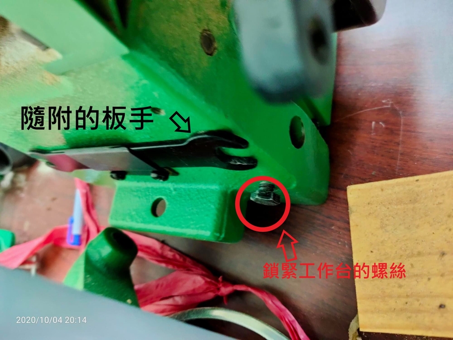 使用斜面切割時將調整角度處的旋鈕轉鬆,調整完也要記得再將它轉緊