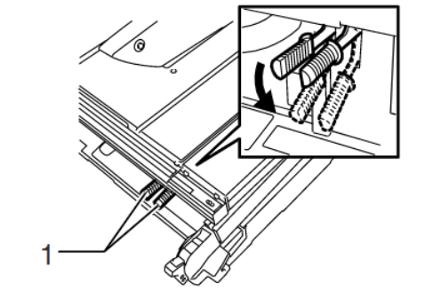 移動柵欄位置後,確定1所指的鉤子在軌道上,即可將把手向下壓緊