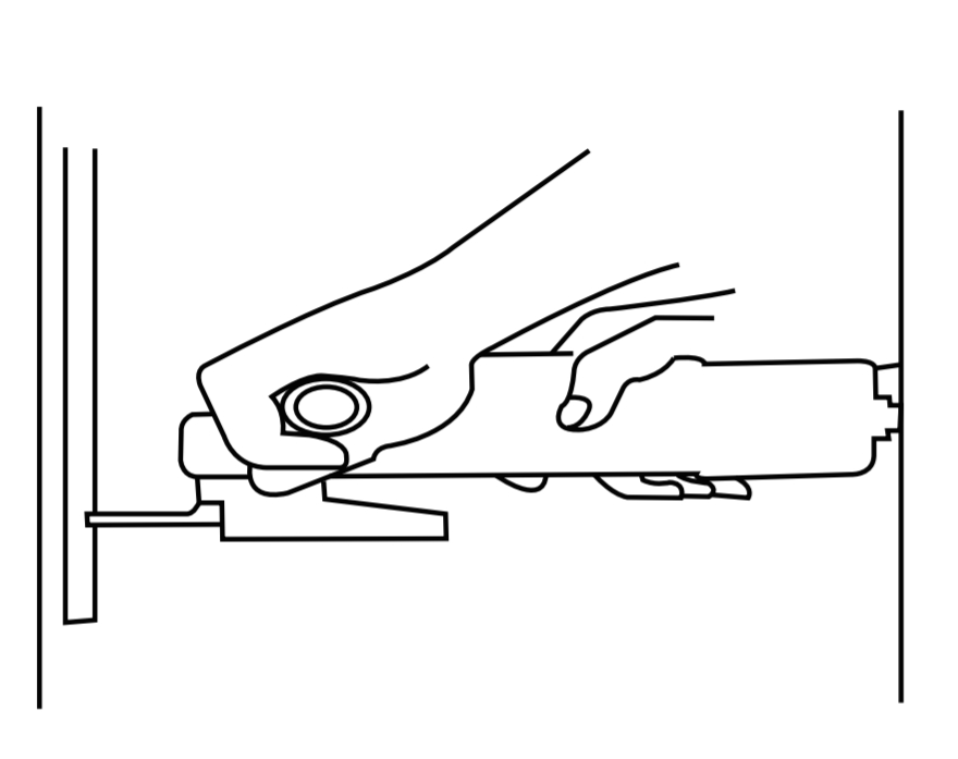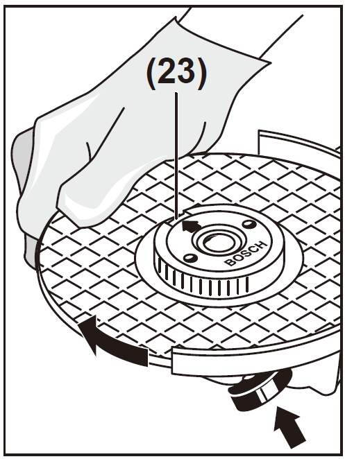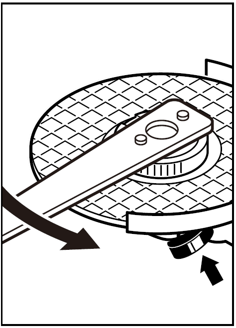 先壓住紅色按鈕,再順時針轉動磨片直到扭緊快速螺母