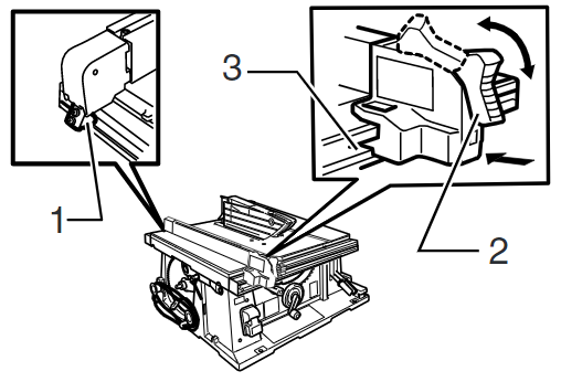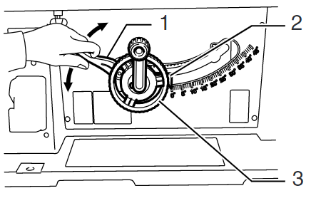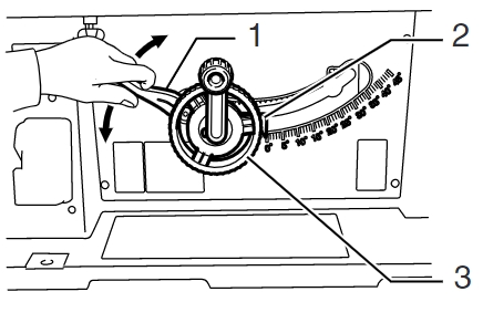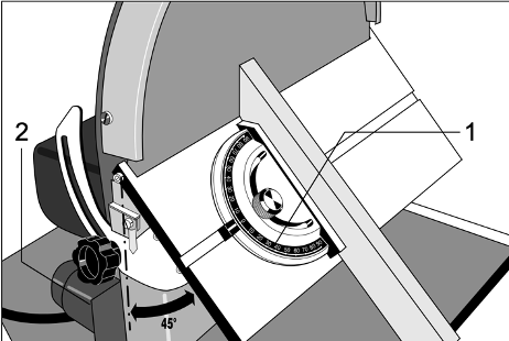 轉動3所指的轉盤調整刀片角度,2所指的箭頭會顯示刀片和平台的夾角