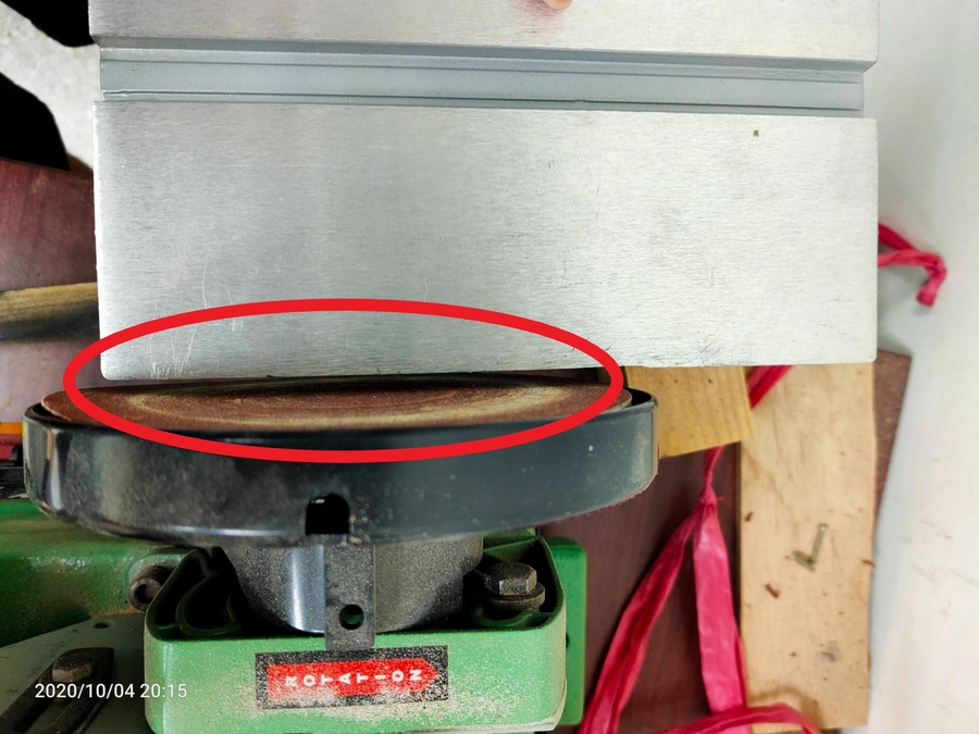 按下電源(紅色按鈕)前,請注意陶瓷輪盤運轉的切線方向不能有人
