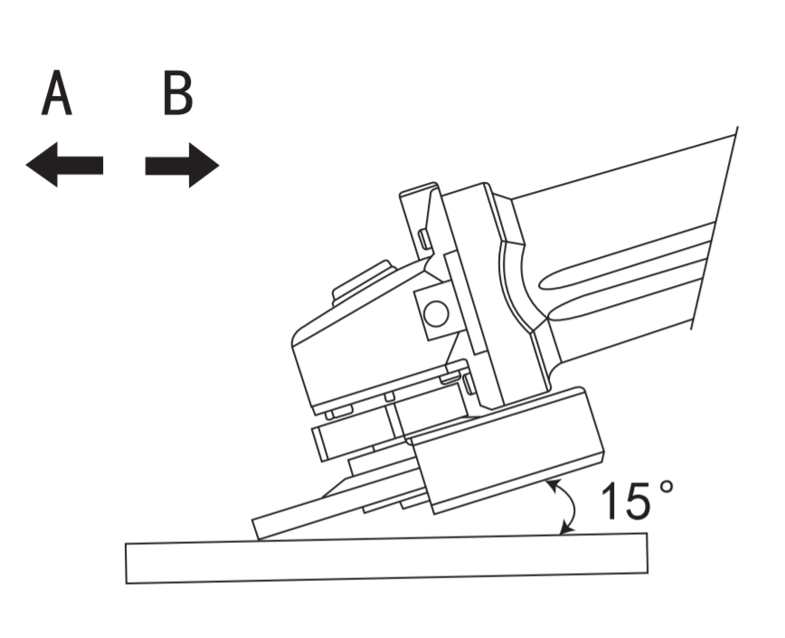 新砂輪磨片的磨合期間,請盡量沿著B方向移動,以免砂輪磨片切入物品中